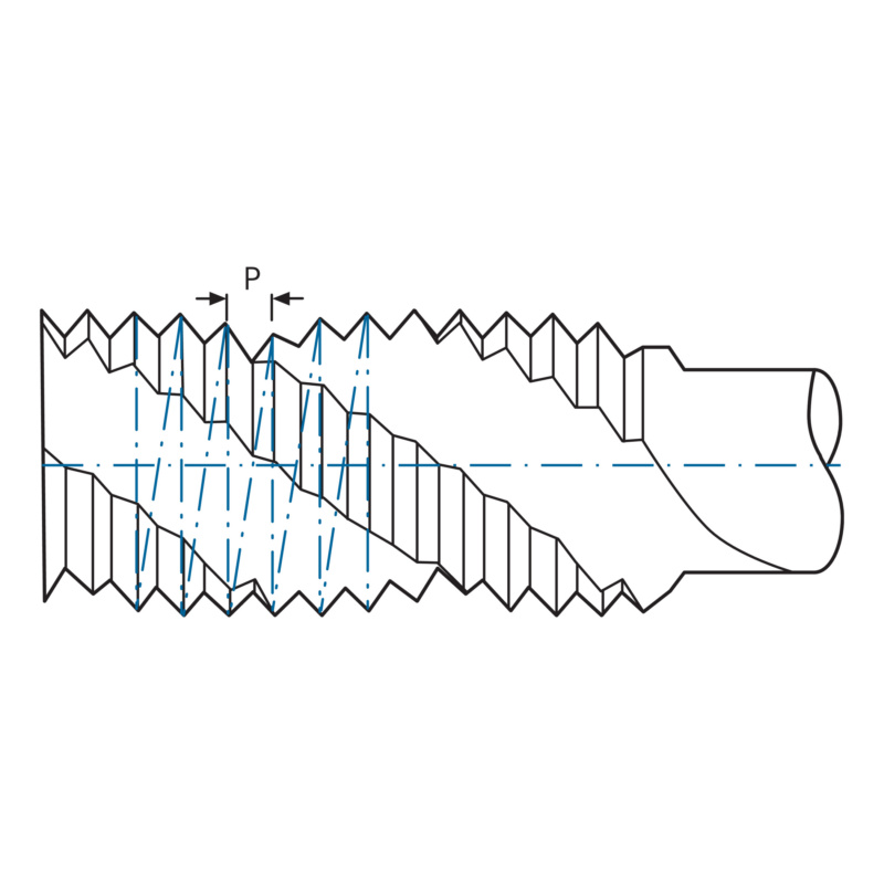 P = Gewindesteigung D = Werkzeugschneidedurchmesser