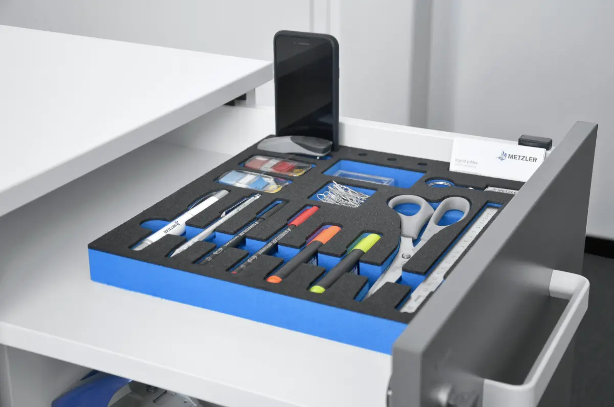 Ordnung bringt Effizienz in den Organisationsabläufen und schafft Wohlbefinden im Arbeitsraum. Doch Ordnung halten ist an der Vilefalt der Gegenstände gar nicht so einfach. Die Organisations- und Ordnungshelfer von OPT-I-STORE® geben mit maßangefertigten Schubladen- und Schrankeinlagen, Schriebtischauflagen, Etuis eine Struktur und bewahren so die Übersicht.