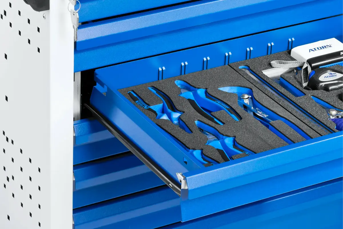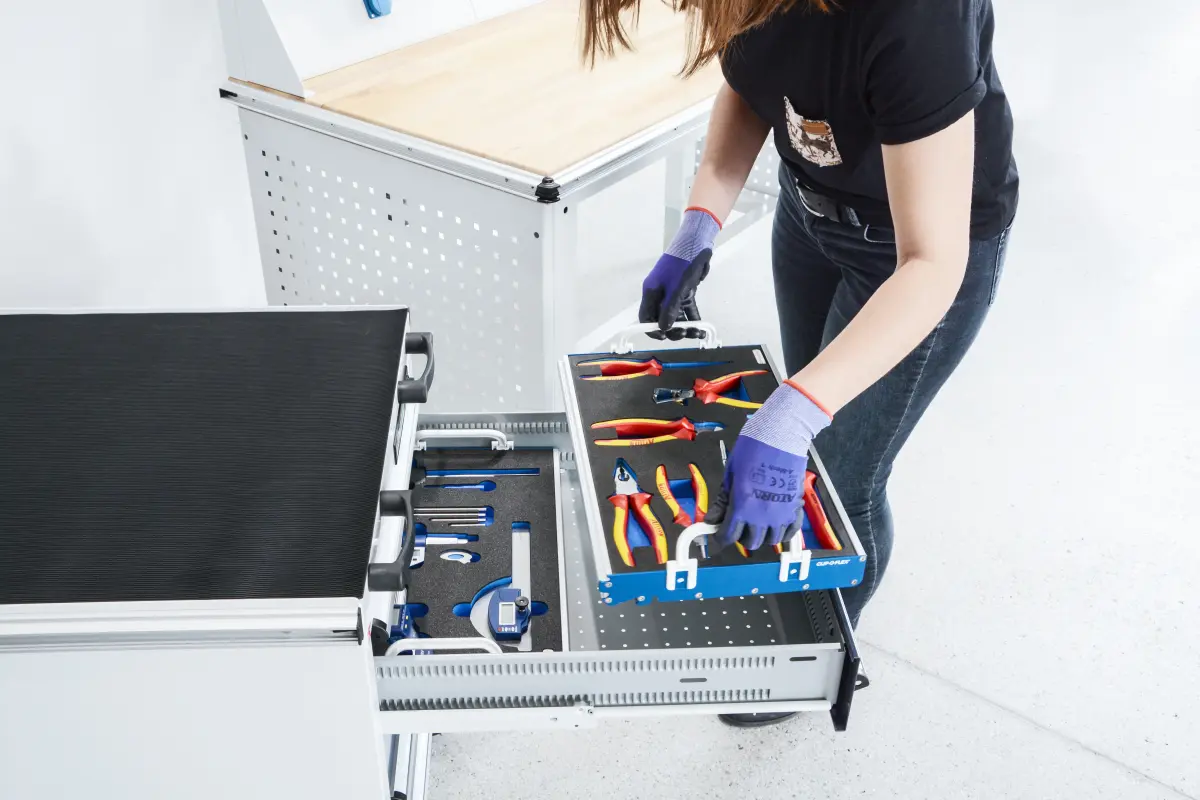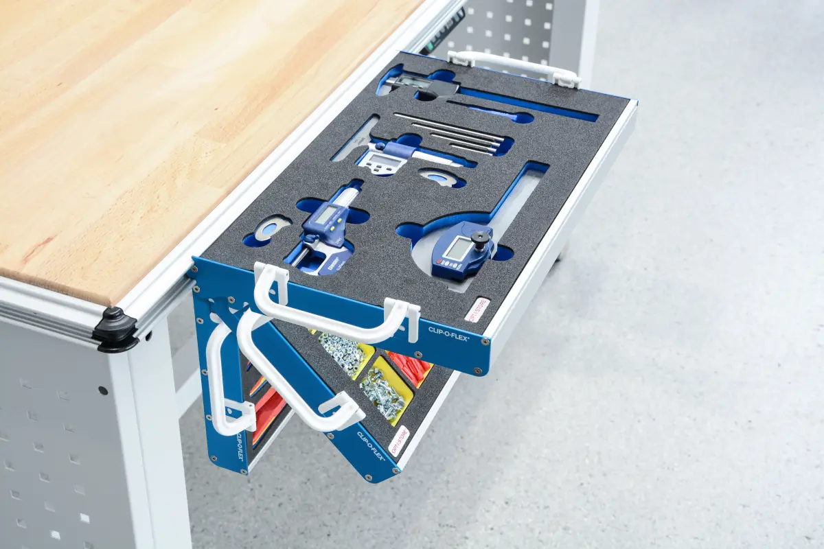 Mit OPT-I-STORE® erhalten Werkzeugwagen, Werkbank oder Montagewagen ein maßgeschneidertes, intelligentes Ordnungssystem, das exakt auf Ihre bedürfnisse angepasst ist. Jedes Werkzeug, Messinsturment oder Bauteil befindet sich genau dort, wo Sie es brauchen - griffbereit, sicher und 5S konform verstaut.